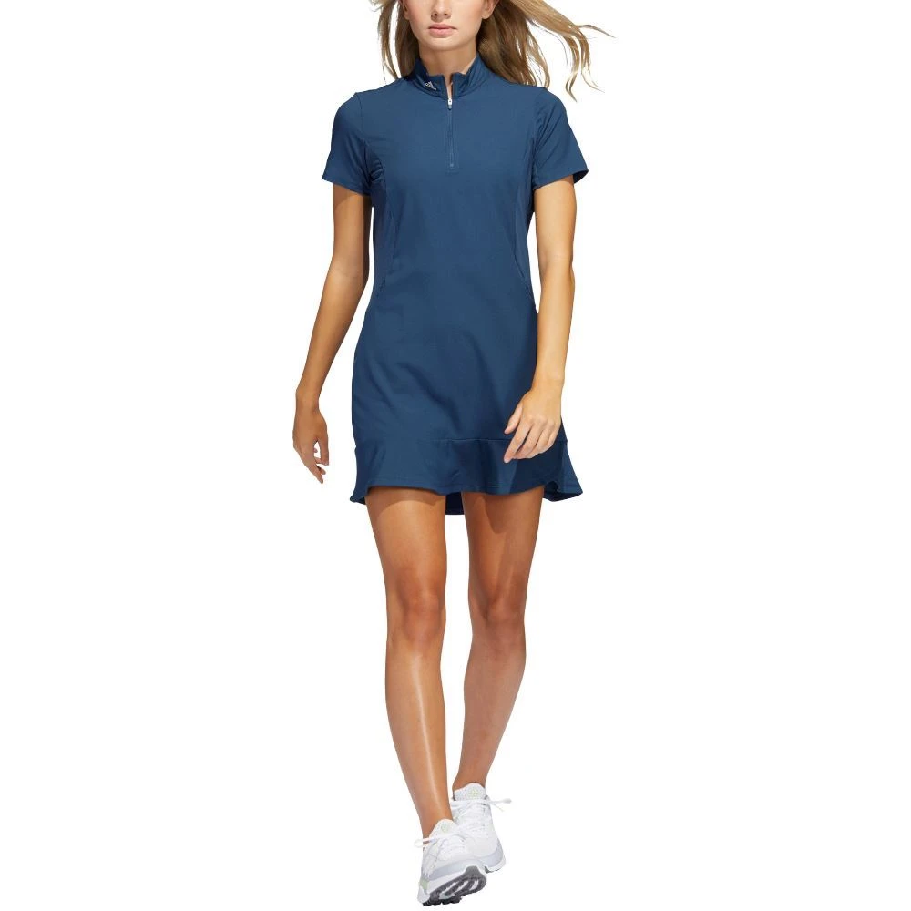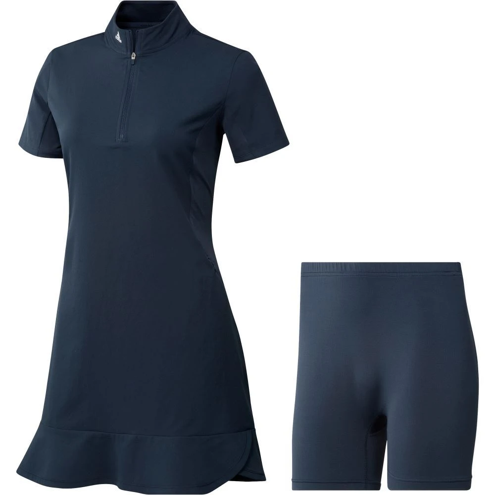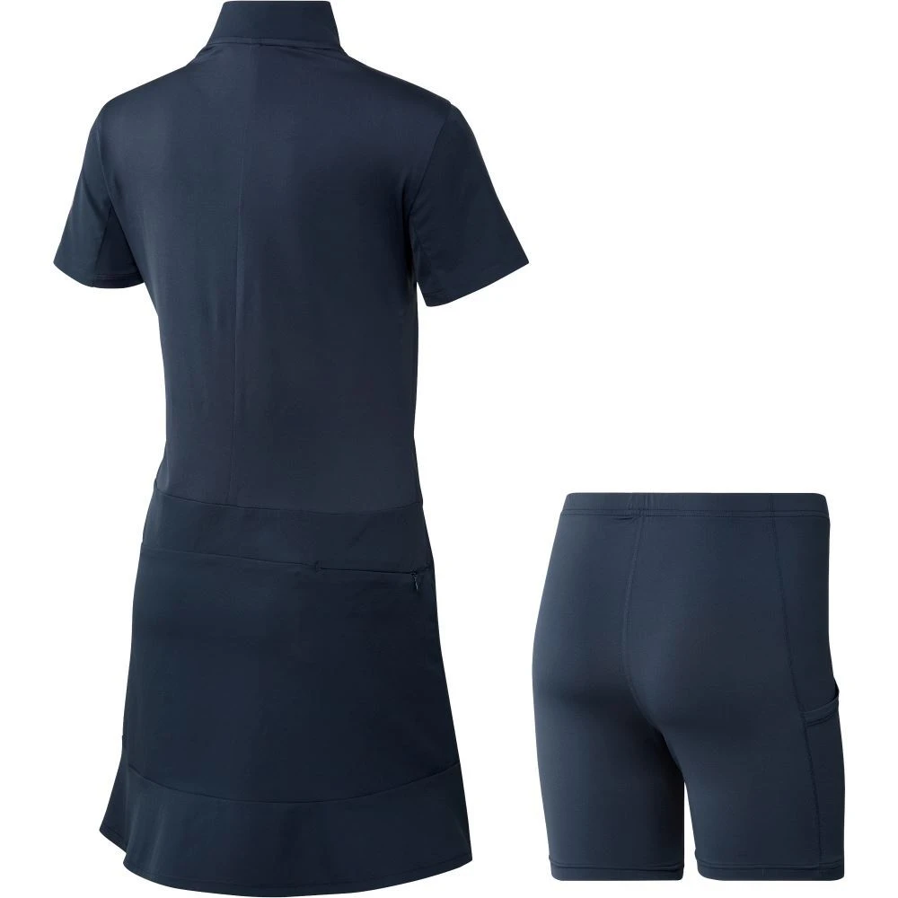 Tee off in an elevated look. This adidas golf dress is made of lightweight twill with AEROREADY to manage moisture and keep you dry. Detached undershorts let you swing and bend without hesitation. Two front pockets and one back pocket stash your tees and scorecard. The sporty design is finished with a scalloped hem for a feminine touch.