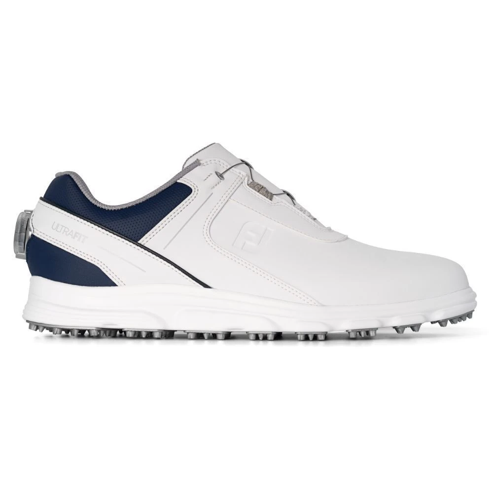 The Footjoy Spikeless UltraFIT SL BOA Golf Shoes provides a superior feel with supple cushioning underfoot, lightweight, improved grip on slopes and wet surfaces. 1-year waterproof warranty.