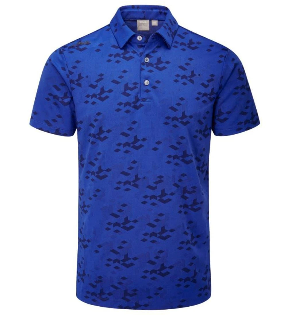 PING Men’s Rae Golf Polo Shirt is designed to make a statement and looks incredible both on and off the course. Tonal scattered jacquard in a geometric graphic camouflage pattern creates an eye-catching look. It features a matching rib under the placket that ties in with the ‘eyemark’ logo on the shoulder. Outstanding technical performance comes from the SensorCool fabric, draws perspiration away from the body, keeping you dry for complete comfort in play. Crease Resistant for a tailored look with low maintenance and stretch fabrics that are cut and engineered to move with your game.
